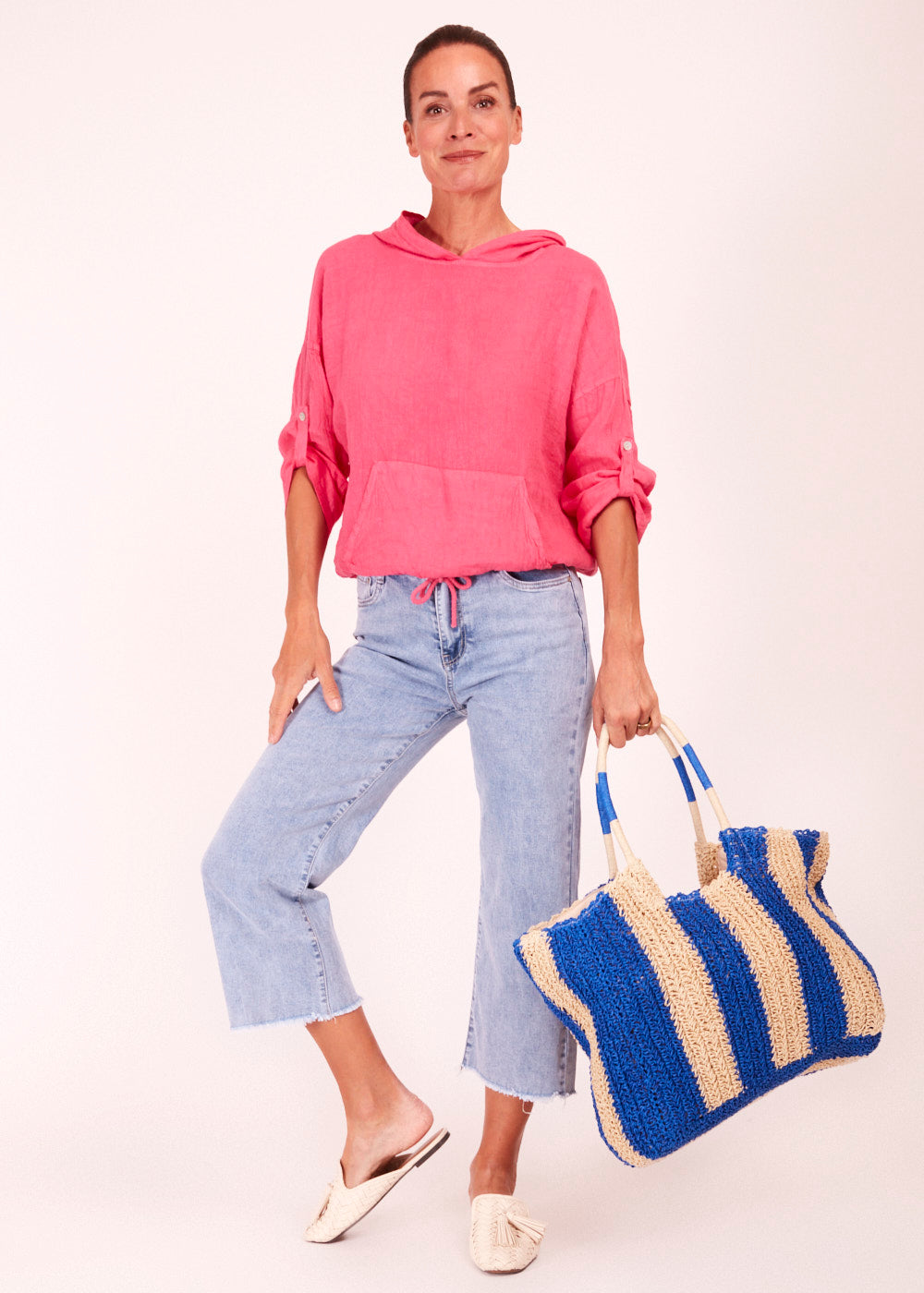 Entdecke unsere stilvolle Basttasche mit blauen Streifen – perfekt für den Sommer! Die Tasche verleiht deinem Outfit einen Hauch von maritimem Flair und ist ideal für Strand, Markt oder Stadtbummel.